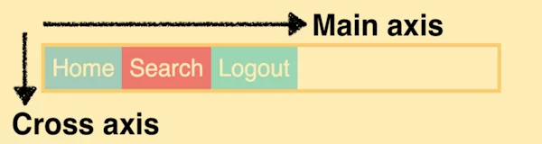 - «محور اصلی» (main Axis): محور اصلی به عنوان جهت اولیه برای چیدمان عناصر فلکس عمل میکند و امکان دارد همیشه افقی نباشد. این محور در واقع محوری محسوب میشود که عناصر در امتداد آن سازماندهی میشوند.