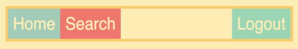 قانون CSS فوق به طور مؤثر عنصر searchرا تا آنجا که ممکن است به سمت راست انتقال میدهد و در نتیجه باعث میشود که عنصر logoutبا آن در سمت راست تراز شود. خروجی کار بالا به صورت زیر است: