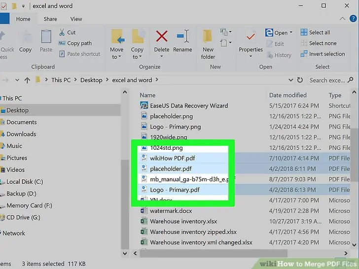 7. فایلهای PDF خود را انتخاب کنید. به پوشهای بروید که فایلهای PDF شما آنجاست و سپس با نگهداشتن دکمهی Ctrl و کلیک کردن روی فایلهای PDF موردنظر، آنها را انتخاب کنید.