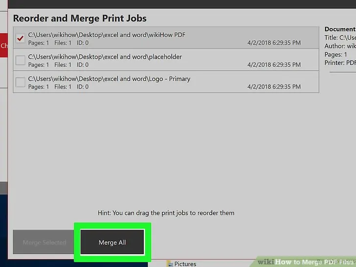 9. روی Merge کلیک کنید. این دکمه در پایین پنجرهی PDF Creator قرار دارد.