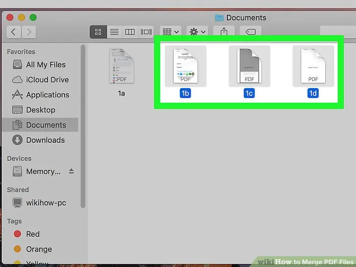 6. باقی فایلهای PDF را انتخاب کنید. دکمه Command را نگهدارید و روی تمام فایلهای PDF که میخواهید ادغام کنید، کلیک کنید.