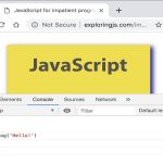 زمانی که یک زبان برنامهنویسی جدید یاد میگیریم، معمولاً نخستین کاری که انجام میدهیم، یادگیری شیوه نوشتن یک اپلیکیشن Hello World است. این اپلیکیشن چنان که از نامش برمیآید، عبارت Hello World را روی صفحه نمایش میدهد. در زبان برنامهنویسی جاوا اسکریپت این کار در کنسول جاوا اسکریپت صورت میگیرد. به این منظور تنها به یک خط کد نیاز داریم: